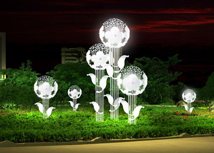 但是景观灯就不同了,景观灯是以观赏为主只安装一个或两个光源是根本无法满足观赏要求的。有些景观灯的光源数量超过100个很是平常。大规模分散式发光景观灯的光源主要以E27灯口的荧光灯为主,那么荧光灯需要多大功率才能满足景观灯的亮度要求呢?事实证明,只有功率在20W以上的荧光才能发挥较完美的照明效果。说到这里有些人不禁会感到疑惑,既然景观灯不是以照明为主,那就说明有点亮度就可以,安装一个10W以下的不就可以吗?这种疑惑固然有理,但是我们仔细观察不难发现所有的景观灯都有一个共同点,那就是光源没有裸露的,它们都是被一种亚克力外罩罩住的,这就可以理解了,亮度过低的光源在被亚克力罩住后发光亮度将会大打折扣,也就根本满足不了景观灯的观赏标准了。
